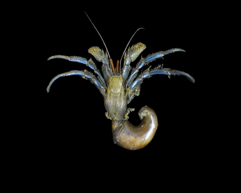 ชื่อสามัญ : ปูเสฉวนขาฟ้า ชื่อวิทยาศาสตร์ : Clibanarius longitarsus แหล่งที่อยู่ : ระบบนิเวศป่าชายเลน และบริเวณหาดหิน สถานที่เก็บตัวอย่าง : อ่าวคุ้งกระเบน จังหวัดจันทบุรี อ่าวยาง จังหวัดจันทบุรี วันที่เก็บตัวอย่าง : 07/05/2021 รายละเอียด : - Captive_Cultivated : ไม่อยู่ ข้อมูลวงศ์ปู : Diogenidae ลักษณะทั่วไป : -
