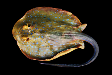 ชื่อสามัญ : ปลากระเบนทอง ชื่อวิทยาศาสตร์ : Taeniura lymma แหล่งที่อยู่ : - สถานที่เก็บตัวอย่าง : - Captive_Cultivated : ไม่อยู่ ข้อมูลวงศ์ปลา : Dasyatidae ลักษณะทั่วไป : -