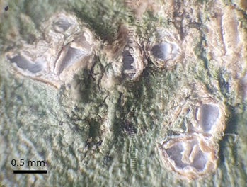 ชื่อสามัญ : ไลเคน ชื่อวิทยาศาสตร์ : Pseudochapsa albomaculata (Sipman) Parnmen, Lücking & Lumbsch สถานที่เก็บตัวอย่าง : เส้นทางศึกษาธรรมชาติ อุทยานแห่งชาติน้ำตกพลิ้ว Captive_Cultivated : ไม่อยู่ ข้อมูลวงศ์ไลเคน : Graphidaceae