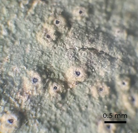 ชื่อสามัญ : ไลเคน ชื่อวิทยาศาสตร์ : Ocellularia diacida Hale สถานที่เก็บตัวอย่าง : เส้นทางศึกษาธรรมชาติ อุทยานแห่งชาติน้ำตกพลิ้ว Captive_Cultivated : ไม่อยู่ ข้อมูลวงศ์ไลเคน : Graphidaceae