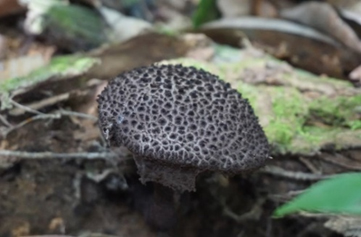 ชื่อสามัญ : - ชื่อวิทยาศาสตร์ : Boletaceae sp. แหล่งที่อยู่ : พบบนพื้นดิน เป็นเห็ดไมคอร์ไรซา สถานที่เก็บตัวอย่าง : ป่าอนุรักษ์พันธุกรรมพืช มหาวิทยาลัยราชภัฏรำไพพรรณี วันที่เก็บตัวอย่าง : 11/05/64 การเจริญเติบโต : เจริญเป็นดอกเดี่ยว การใช้ประโยชน์ : เป็นผู้ย่อยสลายในระบบนิเวศ และไม่มีข้อมูลว่ารับประทานได้หรือไม่ พิกัด : เส้นทางเดินป่าบก (100m) ฐานข้อมูลสารพันธุกรรม : https://www.ncbi.nlm.nih.gov/ Captive_Cultivated : ไม่อยู่ Accession number : รอการตีพิมพ์ ข้อมูลวงศ์เห็ด : Boletaceae ลักษณะทั่วไป : ดอกเห็ดมีสีขาวถึงเทา บริเวณดอกเห็ดจะถูกปกคลุมด้วยสะเก็ดขนาดเล็กที่มีสีน้ำตาลอมเทาเข้มถึงสีดำ คล้ายจุดบนหนังช้าง แข็ง เนื้อภายในดอกเห็ดเป็นสีขาว ขนาด 3.1-11.5 เซนติเมตร ลักษณะก้านตรง เนื้อภายในก้านตัน โคนของก้านจะมีขนาดที่ใหญ่กว่าส่วนบนเล็กน้อย และผิวก้านมีขนหยาบปลกคลุมรอบ มีสีน้ำตาลอมเทาถึงดำ