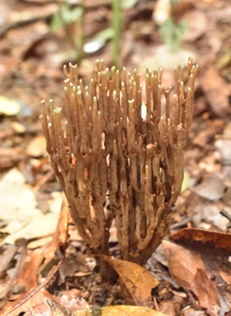 ชื่อสามัญ : เห็ดปะการัง ชื่อวิทยาศาสตร์ : Phaeoclavulina pseudozippelii แหล่งที่อยู่ : บนพื้นดิน สถานที่เก็บตัวอย่าง : ป่าอนุรักษ์พันธุกรรมพืช มหาวิทยาลัยราชภัฏรำไพพรรณี วันที่เก็บตัวอย่าง : 02/06/64 การเจริญเติบโต : เจริญเป็นช่อ คล้ายปะการัง การใช้ประโยชน์ : เป็นผู้ย่อยสลายในระบบนิเวศ และไม่มีข้อมูลว่ารับประทานได้หรือไม่ พิกัด : เส้นทางเดินป่าบก (150 m) ฐานข้อมูลสารพันธุกรรม : https://www.ncbi.nlm.nih.gov/ Captive_Cultivated : ไม่อยู่ Accession number : รอการตีพิมพ์ ข้อมูลวงศ์เห็ด : Gomphaceae ลักษณะทั่วไป : ลักษณะดอกเห็ดสีน้ำตาลปนเหลือง เป็นทรงพุ่ม ผิวขรุขระเล็กน้อย ลักษณะโคนต้นจะเป็นโคนเดี่ยวขนาดใหญ่ ผิวโคนต้นขรุขระเล็กน้อย ปลายกิ่งกลม เรียวแหลมหรือมน สีครีมอมเหลือง สภาพที่อยู่อาศัย: บนพื้นดิน