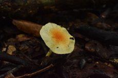 ชื่อสามัญ : - ชื่อวิทยาศาสตร์ : Cyptotrama asprata แหล่งที่อยู่ : บนไม้ผุ สถานที่เก็บตัวอย่าง : ป่าอนุรักษ์พันธุกรรมพืช มหาวิทยาลัยราชภัฏรำไพพรรณี วันที่เก็บตัวอย่าง : 02/06/64 การเจริญเติบโต : เจริญดอกเดี่ยว การใช้ประโยชน์ : เป็นผู้ย่อยสลายในระบบนิเวศ และไม่มีข้อมูลว่ารับประทานได้หรือไม่ พิกัด : เส้นทางเดินป่าบก (100 m) ฐานข้อมูลสารพันธุกรรม : https://www.ncbi.nlm.nih.gov/ Captive_Cultivated : ไม่อยู่ Accession number : รอการตีพิมพ์ ข้อมูลวงศ์เห็ด : Physalacriaceae ลักษณะทั่วไป : ดอกเห็ดจะมีลักษณะเป็นหมวกสีส้มสดใสถึงสีเหลือง ซึ่งในช่วงดอกเห็ดระยะอ่อนจะปกคลุมไปด้วยเส้นใยที่มีลักษณะคล้ายหนามแหลมเล็ก ๆ หมวกเห็ดมีความกว้าง 0.6-2.7 เซนติเมตรบริเวณเส้นผ่าศูนย์กลางดอกเห็ดนูน พื้นผิวหมวกแห้ง สีของหมวกจะมีการเปลี่ยนเป็นสีเหลืองสว่างหรือซีด เพิ่มความเข้มไปที่กึ่งกลางหมวก มีวงแหวนที่ก้าน ก้านดอกอาจปกคลุมด้วยเส้นใยที่มีลักษณะเป็นขน (flocculose) หรือมีขน (fibrillose)
