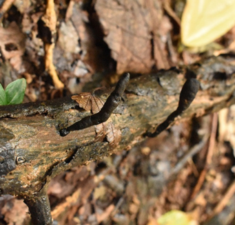 ชื่อสามัญ : เห็ดไซลาเรีย ชื่อวิทยาศาสตร์ : Xylaria papulis แหล่งที่อยู่ : ขอนไม้ผุ สถานที่เก็บตัวอย่าง : ป่าอนุรักษ์พันธุกรรมพืช มหาวิทยาลัยราชภัฏรำไพพรรณี วันที่เก็บตัวอย่าง : 02/06/64 การเจริญเติบโต : ดอกเดี่ยวหรืออยู่เป็นกลุ่ม การใช้ประโยชน์ : เป็นผู้ย่อยสลายในระบบนิเวศ และไม่มีข้อมูลว่ารับประทานได้หรือไม่ พิกัด : เส้นทางเดินป่าบก (310 m) ฐานข้อมูลสารพันธุกรรม : https://www.ncbi.nlm.nih.gov/ ข้อมูลเพิ่มเติม : - Captive_Cultivated : ไม่อยู่ Accession number : รอการตีพิมพ์ ข้อมูลวงศ์เห็ด : Xylariaceae ลักษณะทั่วไป : ลักษณะดอกเห็ดเป็นแท่งเรียว มีรูปทรงคล้ายกระบองขนาดเล็ก ผิวภายนอกมีสีดำ สูง 3-5 เซนติเมตร บริเวณช่วงบนของดอกเห็ดจะมีเส้นผ่านศูนย์กลาง 1-2 เซนติเมตร ผิวด้านบนของดอกเห็ดจะขรุขระ ส่วนเนื้อภายในดอกเห็ดจะมีสีขาว ใต้ปมนูนมีก้อนสีดำๆ รูปขวดก้นกลมฝังอยู่ในเนื้อโดยรอบ