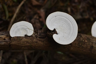 ชื่อสามัญ : เห็ดกาบหอยขาว ชื่อวิทยาศาสตร์ : Trametes elegans แหล่งที่อยู่ : พบได้ตามกิ่งไม้ที่ตายแล้ว สถานที่เก็บตัวอย่าง : ป่าอนุรักษ์พันธุกรรมพืช มหาวิทยาลัยราชภัฏรำไพพรรณี วันที่เก็บตัวอย่าง : 09/12/64 การเจริญเติบโต : แบบเดี่ยว และแบบกลุ่ม การใช้ประโยชน์ : เป็นผู้ย่อยสลายในระบบนิเวศ และไม่มีข้อมูลว่ารับประทานได้หรือไม่ พิกัด : เส้นทางเดินป่าบก (100 m) ฐานข้อมูลสารพันธุกรรม : https://www.ncbi.nlm.nih.gov/ Captive_Cultivated : ไม่อยู่ Accession number : รอการตีพิมพ์ ข้อมูลวงศ์เห็ด : Polyporaceae ลักษณะทั่วไป : ดอกเห็ดเป็นแบบรูปพัดหรือรูปไต มีความกว้าง 10-350 x 10-350 มิลลิเมตร ดอกเห็ดสีขาว เนื้อเหนียวหยาบ พื้นผิวด้านล่างเป็นรูกลม ก้านไม่มีหรือมีก้านสั้น ๆ บริเวณตรงที่ดอกเห็ดติดกับก้านนั้นจะมีส่วนเว้าเข้า บริเวณขอบของดอกเห็ดมีความเรียบเสมอกัน